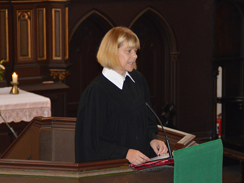 Wie wird sie sein, was hat die Kandidatin für das Superintendentenamt für Ideen und Vorstellungen? Um diese Frage zu beantworten waren viele interessierte Gemeindeglieder der Einladung zum Vorstellungsgottesdienst gefolgt um Pfarrerin Eva-Maria Menard