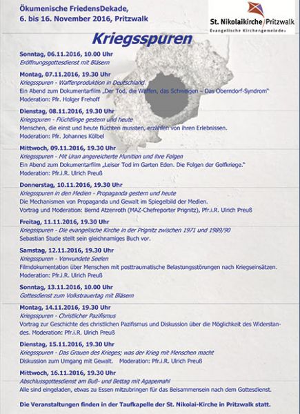 Programm für die ökumenische Friedensdekade in Pritzwalk