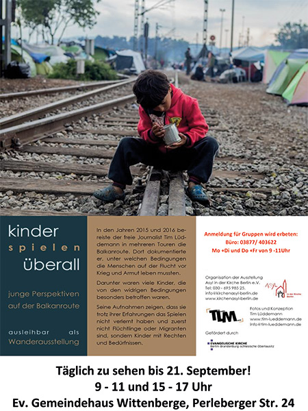 Der Fotograf Tim Lüddemann bereiste 2015/2016 die Balkanroute, über die in dieser Zeit tausende Menschen Schutz in der EU suchten. Dabei porträtierte er Familien und ihre Kinder auf ihrer beschwerlichen Flucht durch die Balkanländer. Kinder, die trotz ihrer unvorstellbar schwierigen Situation das Spielen nicht verlernt hatten.