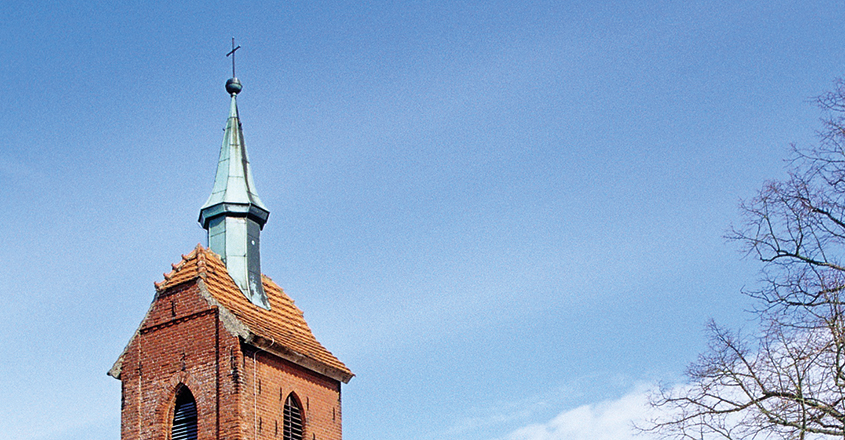 Neugotischer Feld- und Backsteinbau von 1854, mit polygonalem Ostschluss und Dachturm im Westen. Die Eckpfeiler in Fialen auslaufend, die Fensterlaibungen mit Backstein eingefasst. Der Vorgängerbau in Fachwerkbauweise dokumentiert.