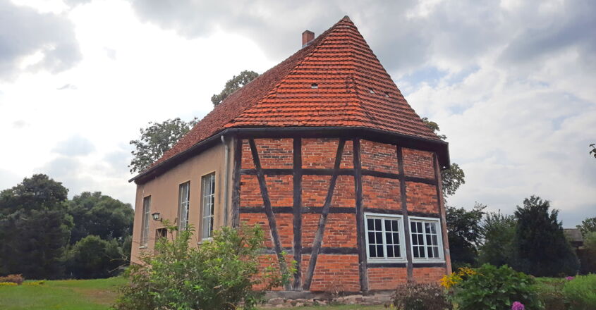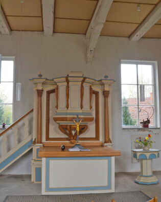 Fachwerkbau mit dreiseitigem Ostschluss, um 1700. Der Chor 1964 innen abgetrennt als Winterkirche, 1971 ein Joch des Kirchenschiffes zusammen mit Dachturm im Westen abgetragen. Neuverputzung der Außenwand.