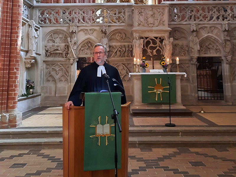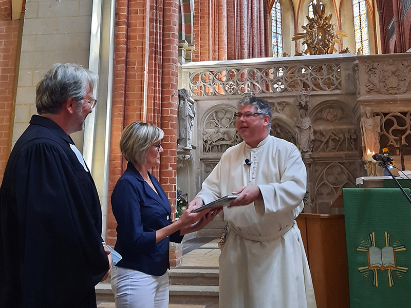 Zur Würdigung dieses Jubiläums hatte die Kirchengemeinde Havelberg zu einem Festgottesdienst eingeladen. Mit dabei war natürlich Pfarrer Frank Städler, der als Dompfarrer seine Begrüßungsworte an die Gäste richtete. Als Gast konnte zudem der Bischof unserer Landeskirche, Dr. Christian Stäblein, begrüßt werden.