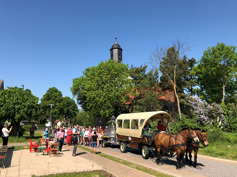 Bei bestem Wetter in der Himmelfahrtswoche wurde die Replik mit Pferdewagen, per Schiff, per Lanz Bulldogg und mit Ponys nach Bad Wilsnack geführt.