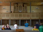 Nicht nur die Glocken läuteten pünktlich zur Einfahrt der Radler, auch das Duo "Herr Maria und Dezibella" begrüßte die Teilnehmer musikalisch. Unter dem Glockenturm sitzend erfreuten sie die Radler mit Gitarrenmusik. Die musikalische Gestaltung des Kulturstopps setzte sich auch in der Kirche zu Seddin fort. Orgelmusik, gespielt von Christina Schunn, lockte viele in den kühlen Raum, er bot Ruhe und die Möglichkeit einmal inne zu halten vom hektischen Treiben der Tour de Prignitz.