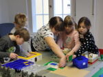 Bis zu 24 Kinder aus Perleberg und dem nördlichen Kirchenkreis trafen sich täglich von 10 bis 17 Uhr, um diese wunderbaren Geschichten zu hören, miteinander zu singen und zu spielen, zu essen und zu basteln, zu toben und… mit LEGO® zu bauen. Das war ein Spaß! Gabriel Möbius, Prediger der Landeskirchlichen Gemeinschaft Ludwigslust, brachte dazu etliche große Kisten LEGO®-Steine sowie große Platten mit, auf denen gebaut werden konnte.