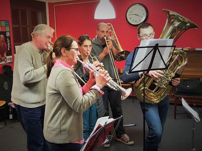 Die Proben fanden in der Musikschule von Herrn Kukureit statt, in der wir nicht nur neue Töne zum Klingen brachten, sondern auch Altbekanntes für den Gottesdienst am Sonntag in Uelzen probten. So tankten wir neben neuer Bläserliteratur auch Sonne satt, indem wir am Samstagnachmittag einen Spaziergang um den Hardausee machten.