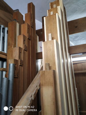 Zunächst wurden 85 Holzpfeifen wieder eingebaut, später sollen noch einmal 27 weitere Pfeifen folgen. Die Pfeifen waren sehr stark von Wurmfraß befallen. Die Schäden waren zum Teil sogar noch größer als zunächst angenommen. Das führte dazu, dass die Pfeifen nicht mehr klangen. Die Pfeifen wurden in der Werkstatt einer Generalüberholung unterzogen, das alte Holz teilweise durch neues ersetzt.
