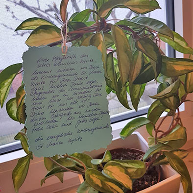 Dieses Jahr haben wir Ostern anders gefeiert - von Ostergrüßen zum Mitnehmen, Kirche vor dem Fenster, Telefongottesdiensten über Livestreams bis Osterlichte to go und Schokogrüßen aus dem Weltladen Kyritz für die Mitarbeiter*innen im KMG Klinikum Kyritz.