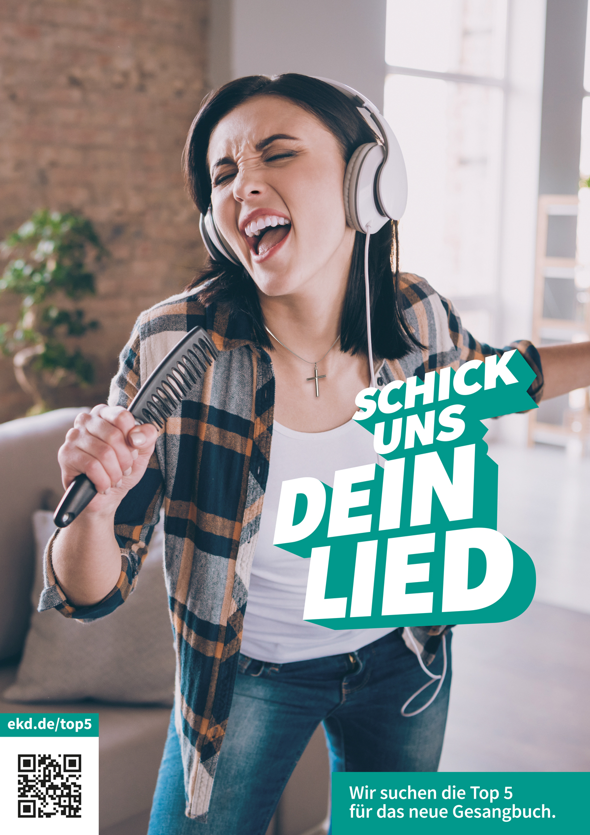 Schicken Sie Ihre Lieblingshits und zwar von Platz 1 bis 5. Also genau die Songs, die auf jeden Fall im neuen Gesangbuch stehen müssen. Im Internet auf der Seite www.ekd.de/top5 können drei Monate lang die Vorschläge eintragen werden. Aus allen genannten Liedern wird eine gemeinsame TOP 5 gebildet, die Sie voraussichtlich Ende dieses Jahres in der Liederapp „Cantico“ finden. Das neue „Gesangbuch“ wird viele Hintergrundinfos und deutlich mehr Lieder enthalten.