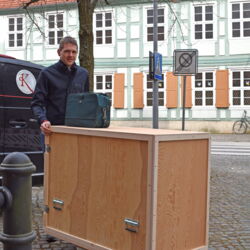 Die Truhenorgel ist da! In der Lenzener Kirche ist das neueste Stück der Orgelwerkstatt Klop Garderen angekommen und von Kantorin Oana Maria Bran in Empfang genommen worden.