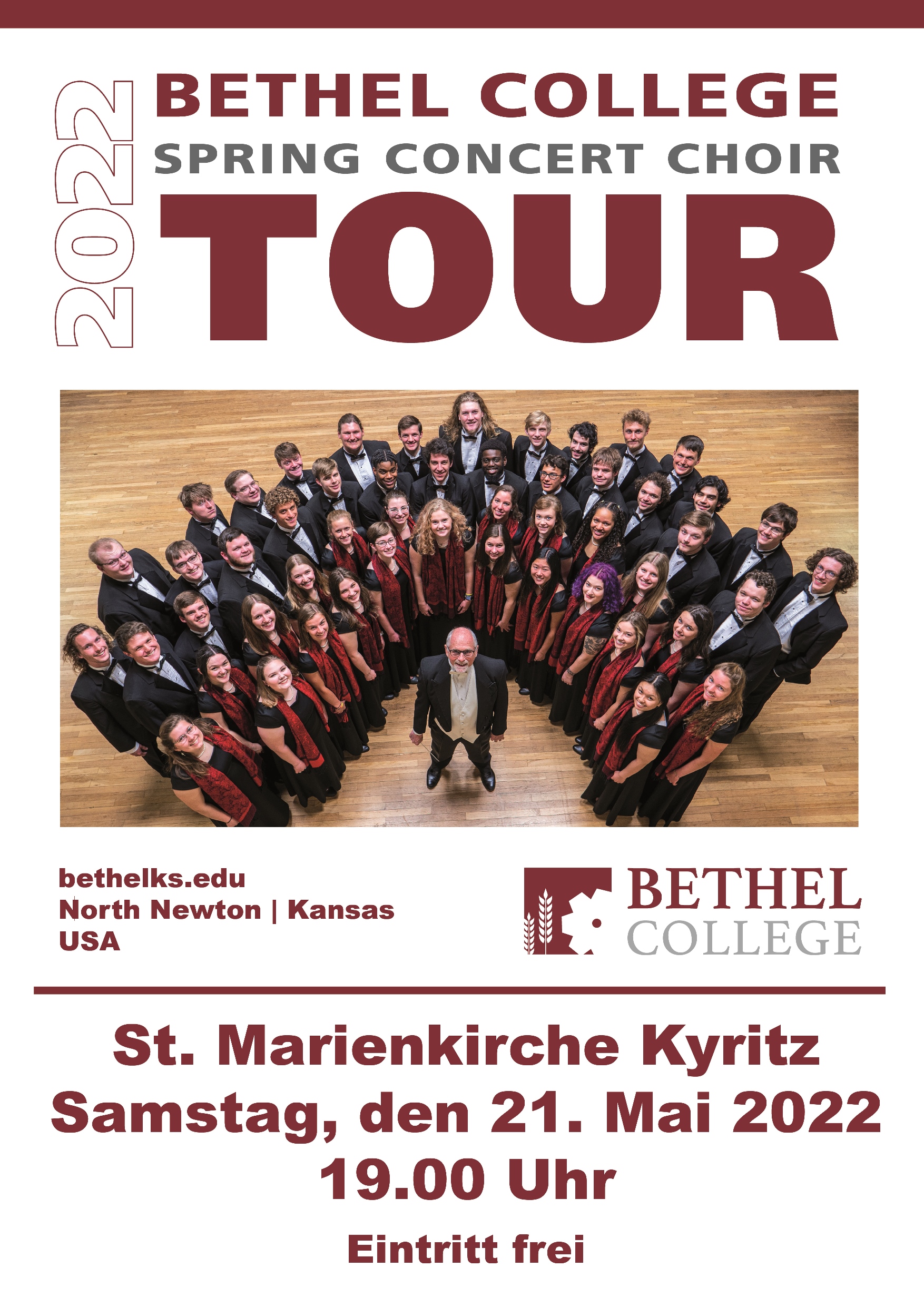 Herzliche Einladung zum Konzert mit dem „Bethel College Concert Choir“ - es erwarten Sie geistliche Vertonungen als auch bekannte traditionelle Chorstücke.