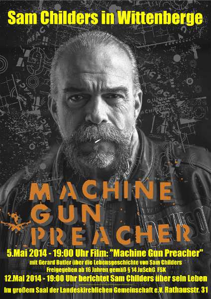 Am 5. Mai 2014 um 19 Uhr wird in der Landeskirchlichen Gemeinschaft Wittenberge, in der Rathausstraße 31, der Kinofilm über das Leben von Sam Childers gezeigt, in dem Gerard Butler die Hauptrolle spielt. Der Film ist erst freigegeben ab 16.