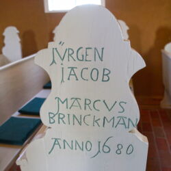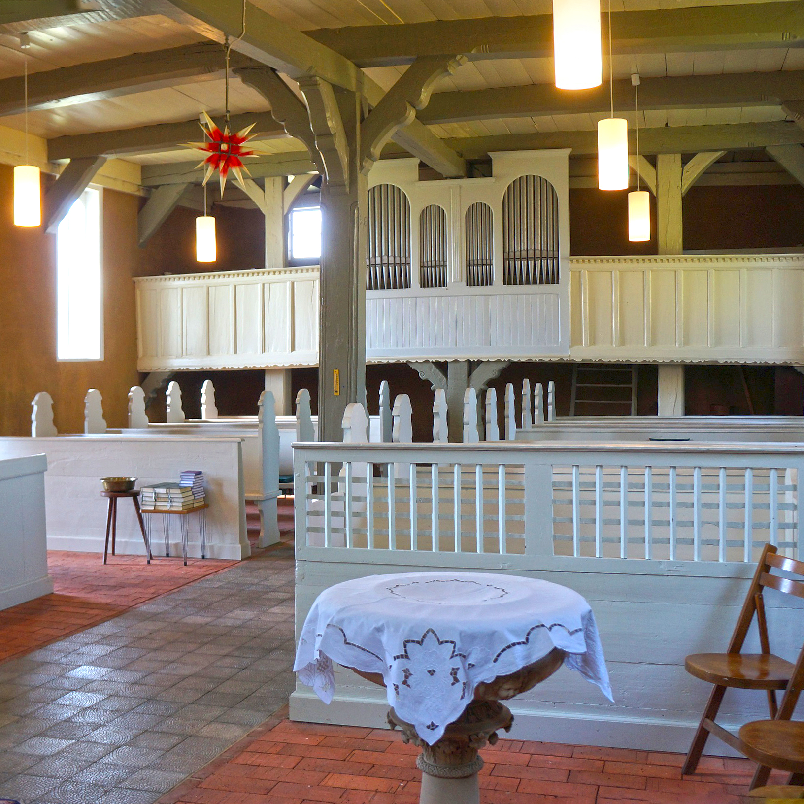 Der Altar (von 1682) und die Kanzel sind aus der Zeit der Spätrenaissance. Das Altargemälde zeigt eine Abendmahlsdarstellung. Die Kirchenbänke von 1664 haben eindrucksvolle Bankwangen, deren schlichte Schönheit nach der Aufarbeitung der Bänke wieder richtig zum Tragen kommt.