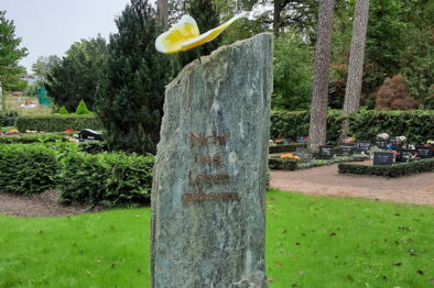 Nicht ins Leben geboren - dieser Schriftzug ziert seit gestern die Stein-Stele am neuen Beisetzungsort für Sternenkinder auf dem Ev. Waldfriedhof Perleberg.
