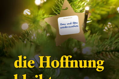 Dieses Weihnachten wird ein Fest ohne Party - wir möchten der Hoffnung trotzdem eine Stimme geben: An Heilig Abend um 20 Uhr können Sie zum Zeichen der Verbundenheit mit uns singen oder musizieren. Ob auf dem Balkon oder im Wohnzimmer, wo immer Sie sind.