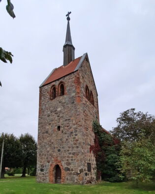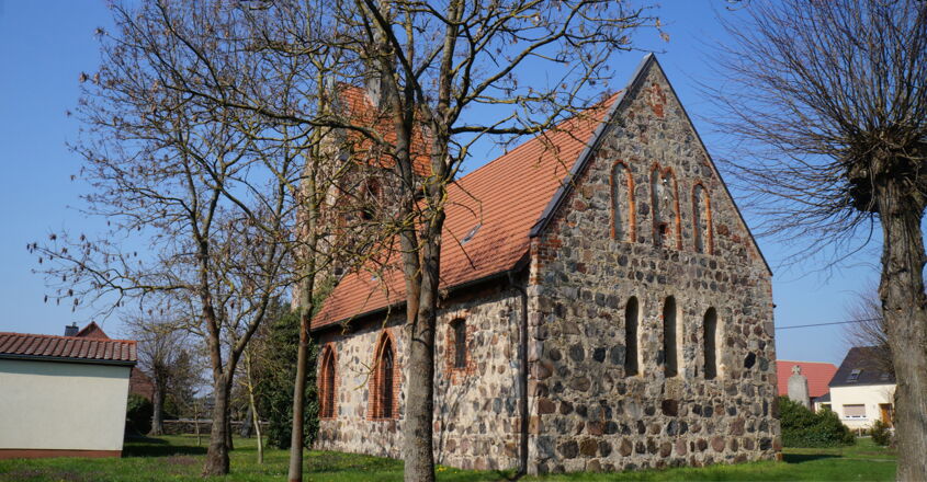 Flachgedeckter Feldsteinbau mit eingezogenem Westturm, Anfang 14. Jh. stark verändert, nur drei Ostfenster und zwei spätgotische Portale auf der Nordseite vermutlich ursprünglich. Dreifenstergruppe im Ostgiebel mit flachen Laibungen und Blenden in Backstein. Schiffsfenster im 18. und 19. Jh. verändert.
