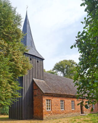 Seit 1542 existiert nachweisbar eine Kirche. Als Fachwerkbau, wie wir sie heute sehen, entstand sie 1852. Die Wetterfahne wurde von 1726 übernommen. Der Turm ist teilweise ins Kirchenhaus eingefügt. Er ist ein Balkengerüst mit Brettern verschlagen. 1995 wurden sie erneuert. Im Innern des Turms befanden sich ursprünglich zwei Glocken, davon eine kleine aus dem Jahre 1614. Beide Glocken fielen dem 1. Weltkrieg zum Opfer. Nach 1918 kam eine Ersatzglocke und 1931 wieder eine größere. Diese mußte kurz vor 1945 auch für den 2. Weltkrieg geopfert werden. Die kleine Glocke ist den Breschern erhalten geblieben. 1962 sanierte man das Kirchenschiff. Für viele Mitglieder der Kirchengemeinde sah es nun doch sehr einfach aus. Fotos erinnern noch an das alte Aussehen im Inneren der Kirche.
