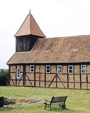 Fachwerkbau von 1696 (i), auf Feldsteinsockel und mit ziegelsichtigen Ausfachungen. Inschrift am geschweiften Sturzbalken einer jetzt zugesetzten Pforte an der Nordseite. Kleiner Dachturm über dem Westgiebel, mit Bronzeglocke von 1697. Einfacher barocker Kanzelaltar.