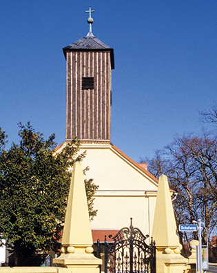 Ehemalige Gutskapelle, kleiner, schlicht verputzter Saalbau von 1807. Restaurierung 1968/70 und in den 90er Jahren des 20. Jahrhunderts. Über dem Westgiebel kleiner Dachreiter mit einer Glocke von 72 cm Durchmesser, 1802 von J. F. Thiele in Berlin gegossen.