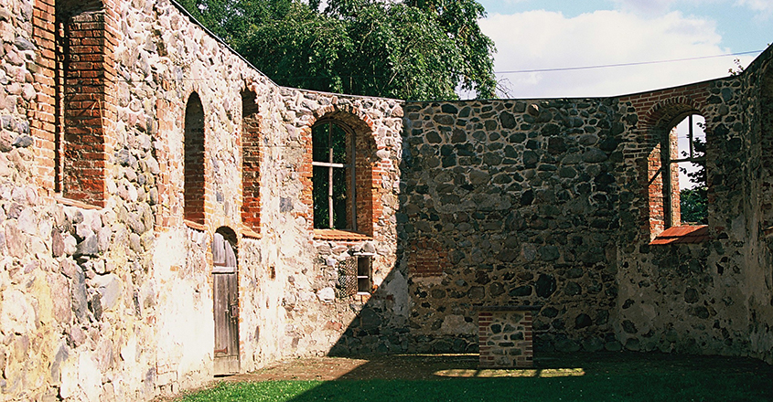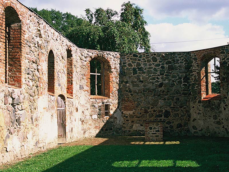 Die Dorfkirche war ein gotischer Feldsteinsaalbau mit dreiseitigem Chorschluss aus dem 13. Jahrhundert, 1711 barock umgebaut; an der Westseite quadratischer Bretterturm. Die Kirche wurde 1973 wegen Baufälligkeit abgerissen; nur die Umfassungsmauern sind stehen geblieben. Korbbogenfenster und Spitzbogentür an der Südseite sind noch erhalten. Die Orgel kam in den Gemeinderaum der Kirche zu Köritz, das Grabdenkmal Otto von Rohr in die Kirche zu Wusterhausen.