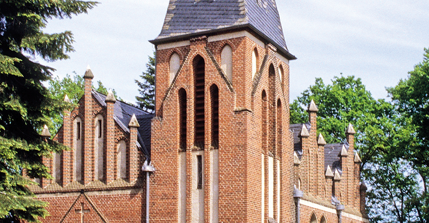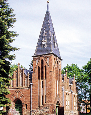Neugotischer Backstein- und Feldsteinbau von 1896, mit flachgeschlossenem Altarraum und hohem Turm über quadratischem Grundriss an der Südwestecke. Mit Südempore, die sich am Außenbau in Dachform und Fensteranordnung abzeichnet. Verschieferte Dacheindeckung. Instandsetzungen 1995/96 und 2004.