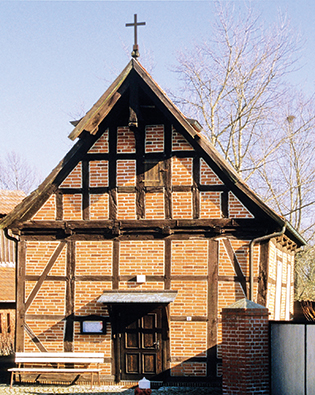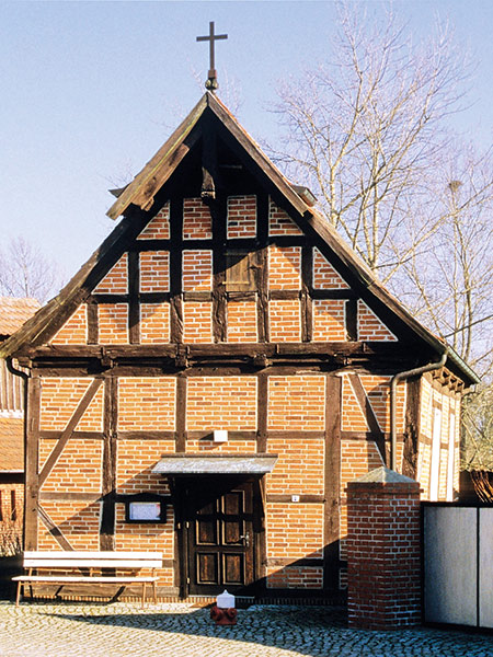 Ehemalige Taufkapelle, nach 1600 errichtet, 1713 erneuert. Fachwerkbau mit ziegelsichtiger Ausfachung von 1852.