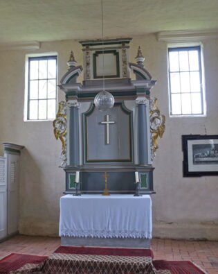 Die Kirche besitzt noch ihre einfache bauzeitliche Ausstattung mit Altar, Kanzel, Tauftisch und Gestühl. Die letzte Renovierung fand 1986 statt.