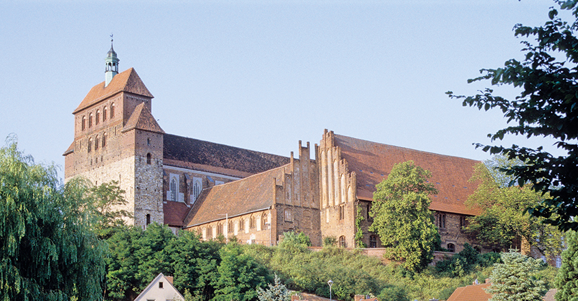 Der Dom 1170 geweiht, vom 12. bis ins frühe 16. Jh. Niederlassung der Prämonstratenserchorherren. Nach schweren Feuerschäden von 1279 Umbau der flachgedeckten romanischen Basilika zum dreischiffigen gotischen Backstein-Hallenbau ohne Querhaus, mit polygonalem Chor, dabei das Mittelschiff wesentlich erhöht und mit Kreuzrippen gewölbt. Spitzbogiges Blenden- und Bogensystem im Inneren mit Laufgang unter Obergadenfenstern.