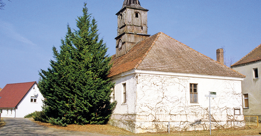 Die 1802 errichtete Kirche ist ein profaner rechteckiger Putzbau mit einem verbretterten Dachturm mit geschweifter Haube in der Mitte des Firstes.