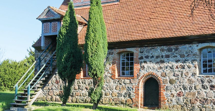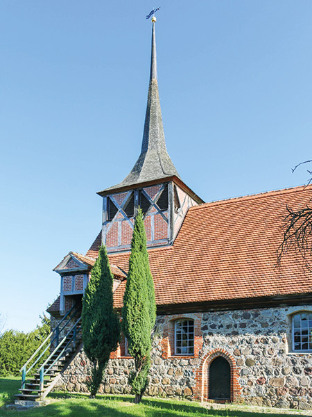 Flachgedeckter Feldsteinbau von 1321 (d). Bauzeitliches Südportal mit Gewände aus Backstein, das gleichartige Westportal zugesetzt, die Fenster verändert.