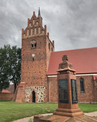 Spätgotischer einschiffiger Backsteinbau mit schiffsbreitem Westturm, Anfang 16. Jh., angefügt an einen bereits bestehenden zweijochigen Kapellenbau mit 3/6-Schluss von Mitte 15. Jh. Der zum Chor umgeänderte kreuzrippengewölbte Ostbau auf der Nordseite leicht eingezogen. Das Kirchenschiff ursprünglich auf Wölbung angelegt, flachgedeckt mit Balkendecke ausgeführt. Instandsetzungen 1892, 1983, 1999 und 2013.