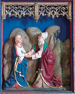 | Linker Seitenflügel unten: | Mariä Heimsuchung (Maria besucht Elisabeth) |