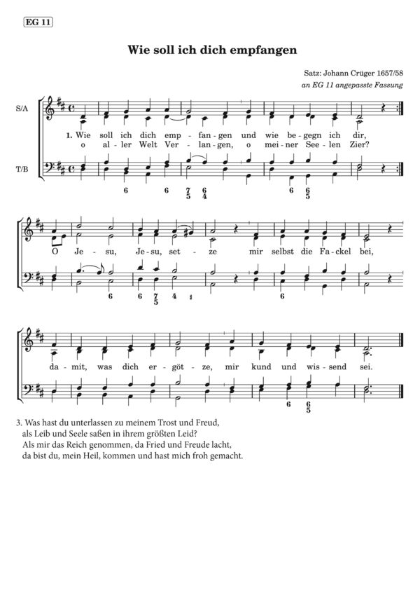 Wir gehen in die 3. Runde und singen zum 3. Advent das ehrwürdige Adventslied „Wie soll ich Dich empfangen“, Evangelisches Gesangbuch Nr. 11, die 1. und 3. Strophe.