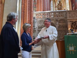 Nach dem Gottesdienst erhielten die Gäste die Gelegenheit zu Grußworten. Bischof Dr. Christian Stäblein gratulierte zur Domweihe vor 850 Jahren. Er dankte der Gemeinde, dem Landkreis, der Stadt und der Kulturstiftung für das Engagement und die Liebe zum Dom und das Füllen mit Leben.