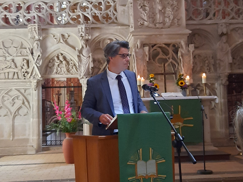 Zur Würdigung dieses Jubiläums hatte die Kirchengemeinde Havelberg zu einem Festgottesdienst eingeladen. Mit dabei war natürlich Pfarrer Frank Städler, der als Dompfarrer seine Begrüßungsworte an die Gäste richtete. Als Gast konnte zudem der Bischof unserer Landeskirche, Dr. Christian Stäblein, begrüßt werden.