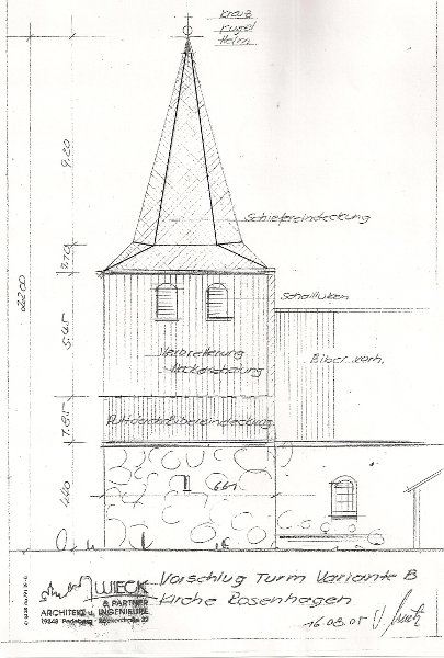 - Wiederaufbau des Rosenhagener Kirchturms, weitgehend nach historischem Vorbild