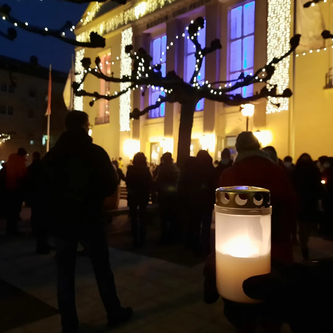 Knapp 300 Menschen trafen vor dem Wittenberger Kulturhaus zur Veranstaltung. Es wurde der Corona-Toten gedacht und in Reden von Pfarrerin Mareike Sabl, Pfarrer Daniel Feldmann und des Bürgermeisters Oliver Hermann, dazu aufgefordert, bei Protesten gegen die Corona-Maßnahmen keinen rechtsgerichteten Organisationen zu folgen.