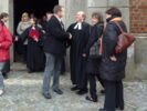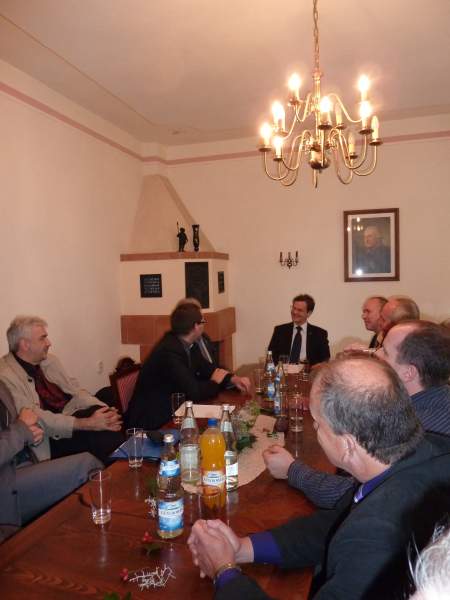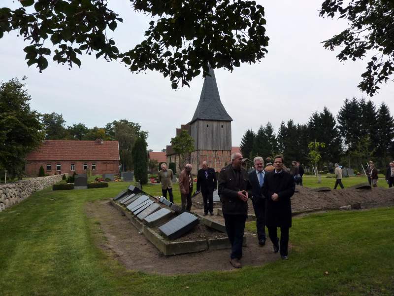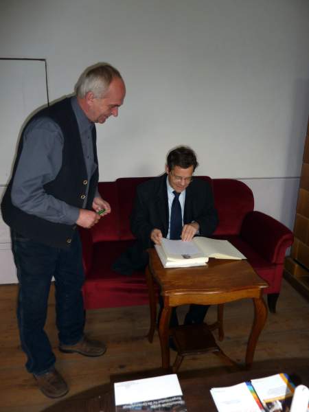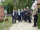 Danach besuchte er das ehemalige Pfarrhaus in Blüthen. Durch die Aktivität der dortigen Ältesten ist das Pfarrhaus vor dem Verfall wie dem Verkauf bewahrt geblieben. Im ehem. Pfarrhaus soll, mit Unterstützung der Martin Luther Universität Halle, ein Ort entstehen, in dem die Wirkungen des Pfarrhauses auf dem Lande gezeigt werden. Das Pfarrhaus auf dem Land war Ort vielfältiger Begegnung. Seelsorgerliche Gespräche, Bildung und Unterrichtung, Kultur und wirtschaftliche Fragen - von all dem gingen Impulse in das Dorf aus. Dies soll in Blüthen gezeigt werden. Es wurde deutlich, dass ein solches Projekt starke Partner braucht, besonders aber vor Ort Menschen, die es mit Elan tragen und begleiten. Wichtig war zu bemerken, wie auch die Kommune die Arbeit der Kirchengemeinden im Amtsbereich unterstützt. Neben Frau Ministerin Dr. Münch übernimmt unser Bischof die Schirmherrschaft für das Projekt: 'Alte Landpfarrstelle Blüthen'.