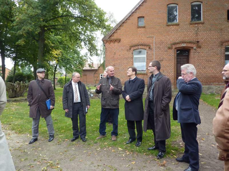 Nach dem Besuch in Blüthen war der Bischof dann auf dem landwirtschaftlichen Betrieb von Herrn Reiner Guhl in Düpow. Kenntnisreich informierte Herr Guhl über die Situation in der Landwirtschaft, über Chancen aber auch Probleme. Er zeigte uns die Ortslage Düpow und Teile der Gemarkung. Ob Biogas oder Milchpreis, ob Fruchtfolge oder Genkartoffel; mit klarem Durchblick wurden wir informiert. Zugleich schilderte er und seine Frau dem Bischof das kirchliche Leben am Ort.