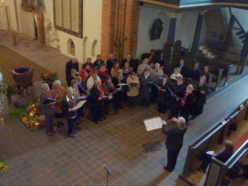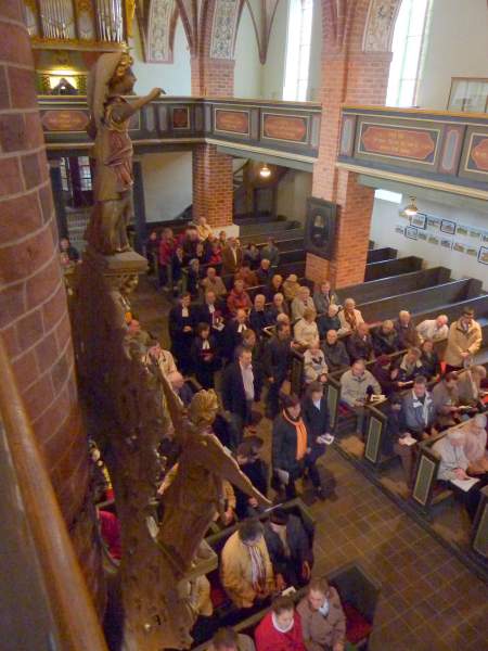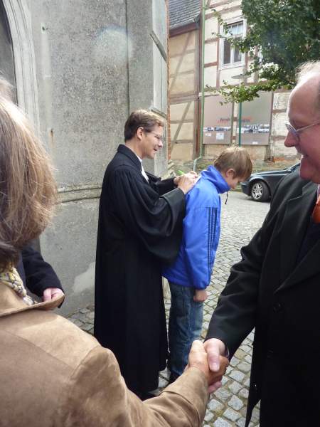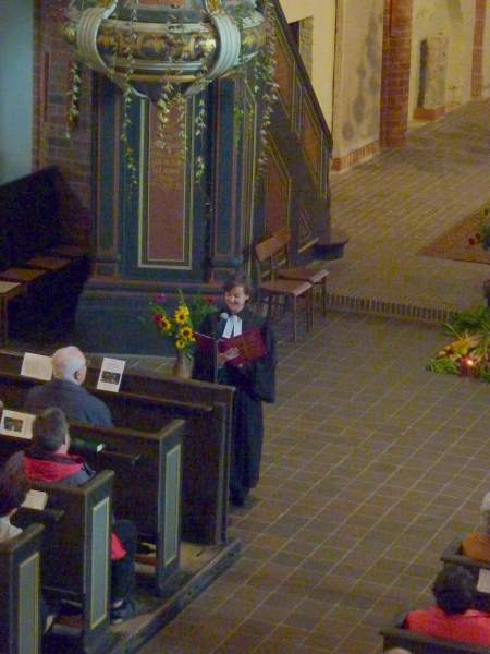 Am 3. Oktober predigte der Bischof dann im Gottesdienst zum Erntedankfest und dem 20. Jahrestag der deutschen Einheit in Lenzen. Warum gerade in Lenzen? Weil dort in all den Jahren zuvor der Tag der deutschen Einheit mit einer geistlichen Besinnung begonnen wurde. In seiner Predigt wies der Bischof darauf hin, was sich in den letzten 20 Jahren positiv in Kirche und Gesellschaft verändert hat. Er erinnerte daran, welchen Anteil wir in unseren Gemeinden daran hatten und haben. Wir dürfen dankbar sein und haben Resignation nicht nötig! An dem festlichen Gottesdienst nahmen auch Vertreter der Partnerkirchengemeinde aus Villingen im Schwarzwald teil; ein schönes Signal an diesem besonderen Tag!