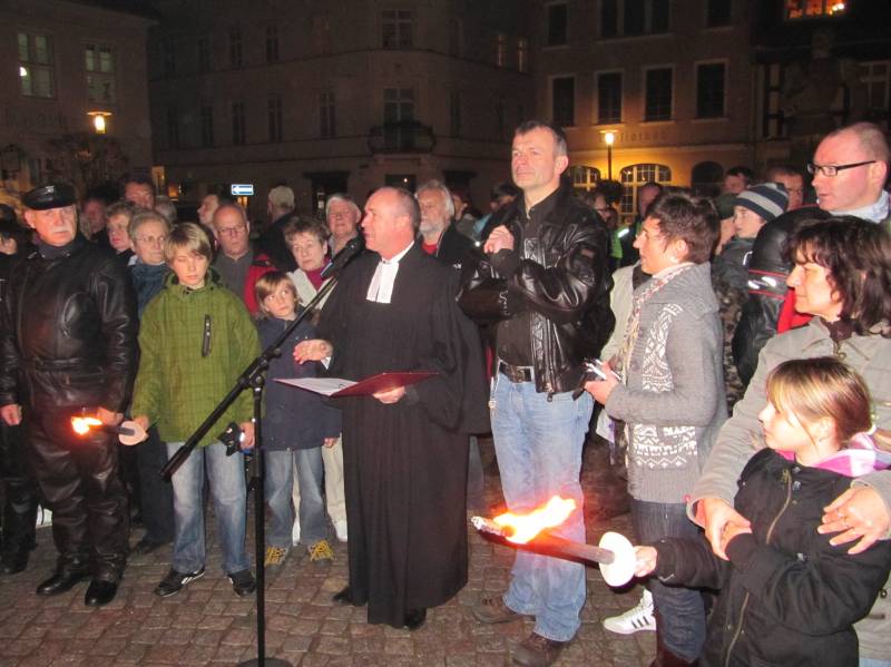 Aber wir glauben, dass Gott die Antwort kennt – und unsere Lebensfahrt nie ein Ende, sondern immer ein Ziel hat: nämlich bei ihm. Gott umgibt uns. Darum können wir nie tiefer fallen, als in dieses Geheimnis, von dem alles kommt. Weil er uns umgibt, deshalb stehe ich hier; als Hinweiszeichen auf ihn. Darum ist auch die evangelische Kirche mit ihnen unterwegs und für Sie da. Und deshalb gedenken wir hier auch der Motorradfahrerinnen und Motorradfahrer, die heute nicht kamen – nach einer Schweigeminute spreche ich das Vaterunser –. Amen