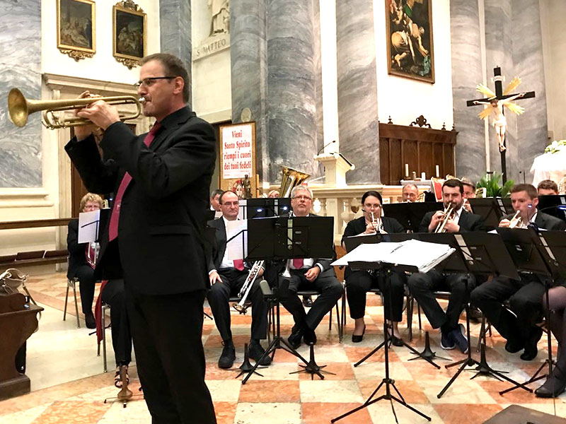 Piazzakonzerte ließen die Instrumente nicht kalt werden. Höhepunkt der Tournee war am 25. Mai das Abschlusskonzert in der großen Klosterkirche SS. Zeno e Martino in Lazise.