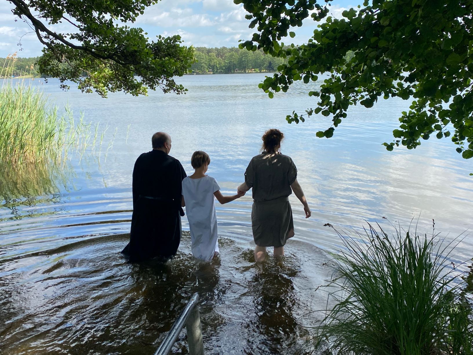 Es war der Wunsch des 12jährigen Täuflings, seine Taufe als Ganzkörpertaufe zu erleben. Die Ganzkörpertaufe ist ein Ritual, das in der Zeit des Urchristentums bis ins spätere Mittelalter hinein gebräuchlich war. Dahinter steht, dass die Taufe ein Zeichen für das Leben und Sterben von Christus ist: der alte Mensch wird vom Wasser „begraben“ und taucht als neuer Mensch wieder auf.