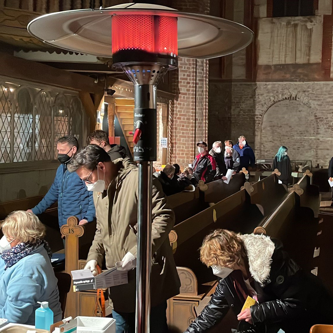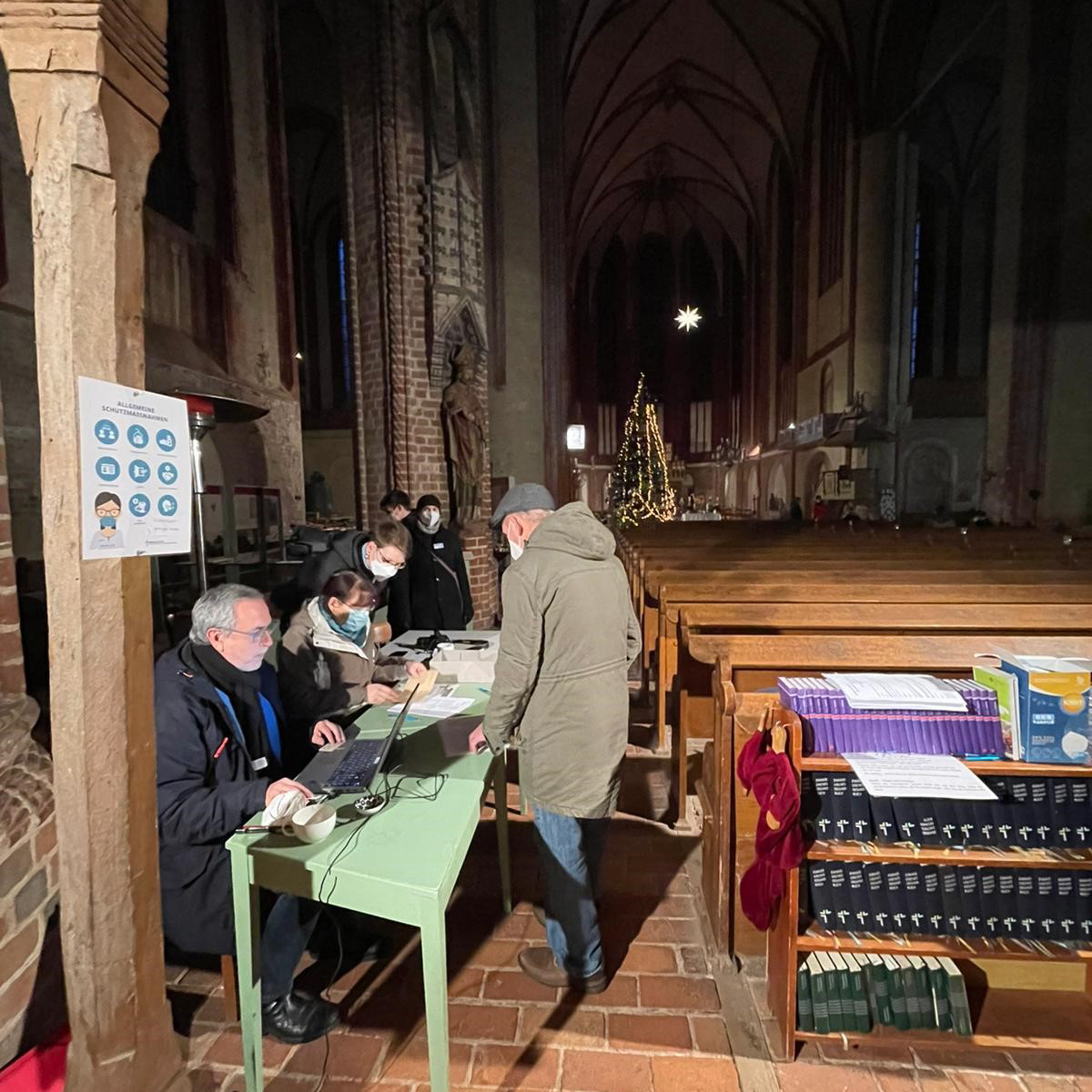 Auch in der Kirche Karstädt wurde das Angebot sehr gut angenommen, auch hier standen bereits um 15 Uhr viele Menschen in der Schlange, weit vor dem Beginn um 16 Uhr. Insgesamt konnten in Karstädt auch fast 100 Menschen geimpft werden. Der Großteil holte sich hier die Booster-Impfung ab. Einer der Herren kommentierte die Aktion mit „So lange habe ich ja noch nie in einer Kirche gesessen!“.