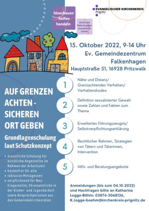 Bitte melden Sie sich bis zum 4. Oktober 2022 bei Katharina Logge-Böhm unter 03876-3068136 oder K.logge-boehm@kirchenkreis-prignitz.de an.
