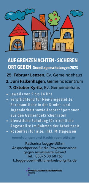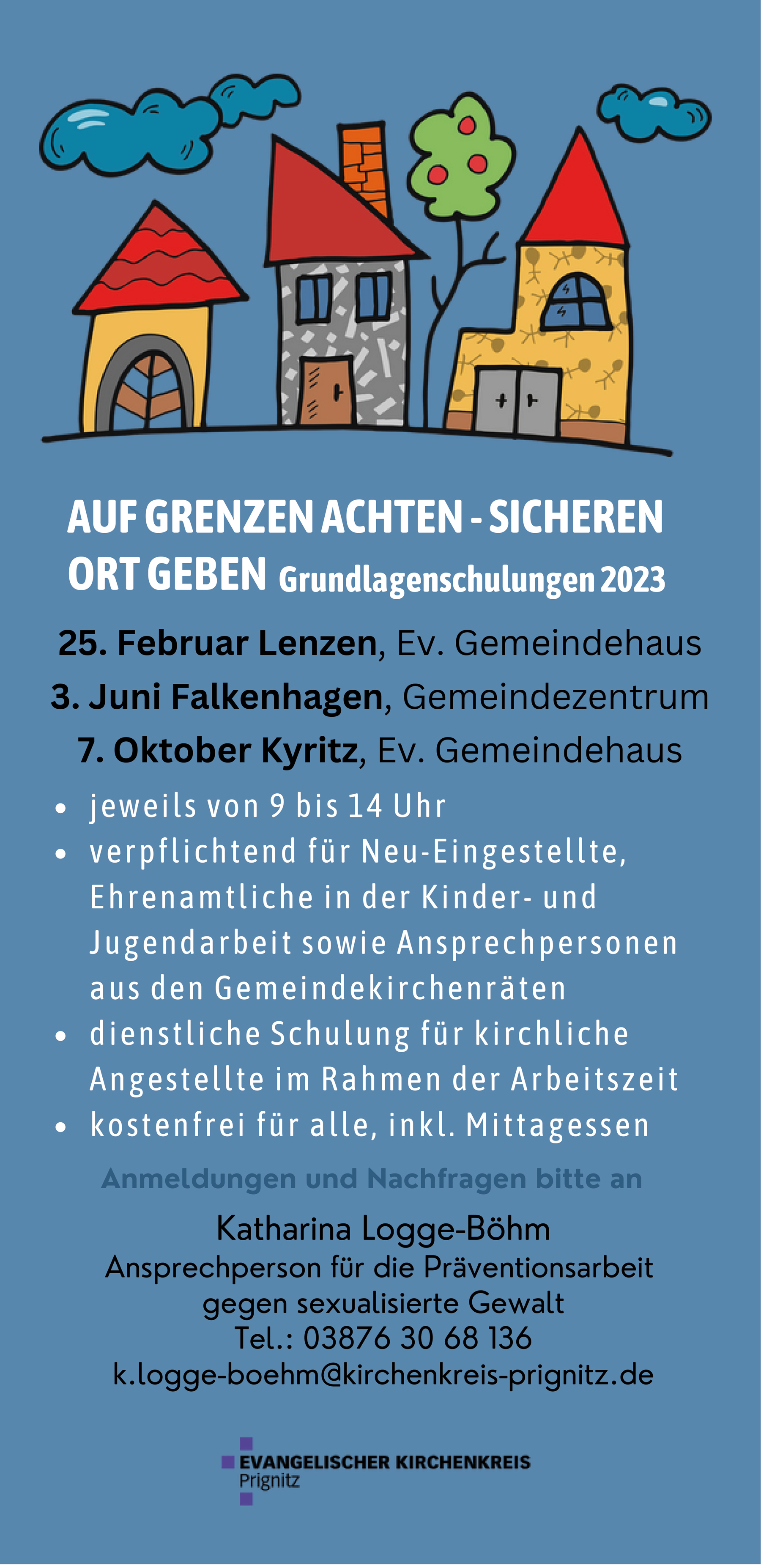 Anmeldungen und Nachfragen bitte an Katharina Logge-Böhm: 03876-3068136, k.logge-boehm@kirchenkreis-prignitz.de