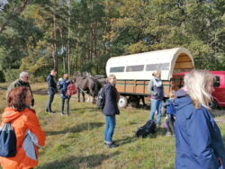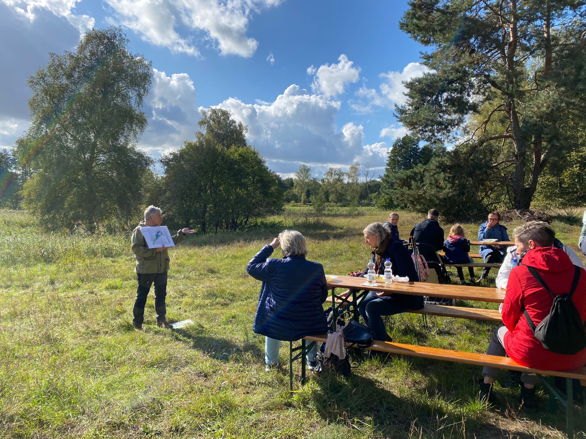 Am Nausdorfer Torfstich wurde die Mittagsrast eingelegt und Frau Rath von der Lenzener Naturwacht zeigte uns die vorhandenen Schätze aus der Tier- und Pflanzenwelt des Rambower Moores in Bildern. Danach ging es für die eine Gruppe mit einem Kremser auf der gegenüberliegenden Seite des Tals zurück und die zweite Gruppe absolvierte die Rücktour per pedes nach Boberow.
