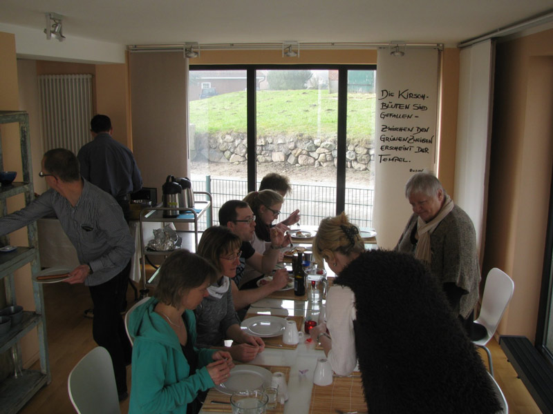 Der Freitagabend war Standortbestimmung, quasi Startlinie. Am Samstag wechselten sich Probeneinheiten, gesellige Pausen und am Nachmittag ein Strandspaziergang bei sonnigem Wetter an der Ostsee ab. Genug frische Luft getankt, um bis in die Abendstunen zu proben. Dann war Geselligkeit angesagt, wichtig für den Gleichklang eines Ensembles.