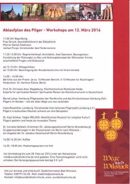 Die Tagung richtet sich an alle Menschen, die sich für die Entwicklung der Wunderblutkirche St. Nikolai und ihrem Umfeld in den kommenden Jahren interessieren, an Vermieter von Pilgerquartieren, an zukünftige und ehemalige Pilger, an alle Christen in der Prignitz ebenso wie an Kulturinteressierte und im Fremdenverkehr arbeitende Personen.