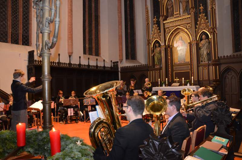Am nächsten Tag stand dann unser eigenes alljährlich am dritten Advent stattfindendes Weihnachtskonzert in der Perleberger St. Jacobi Kirche auf unserem Terminkalender, denn wir wollten auch unserer eigenen Gemeinde eine schöne Musik bereiten. Der Schwerpunkt lag hier auf traditionellen Weihnachtsliedern, welche von einigen freien Stücken und modernen Kompositionen unterbrochen wurden. Wir „swingten“ ein wenig zu „Ihr Kinderlein kommet“ oder spielten die Ouvertüre vom „Concerto Grosso“ unseres Lieblingskomponisten Traugott Fünfgeld. Alle Bläser haben sich sehr über die riesige Zuhörerschaft gefreut. Wir vernahmen nach dem Konzert viel Lob, was uns natürlich sehr gefreut hat und anspornt noch besser zu werden. Auch hier waren unsere Anfänger eifrig mit dabei und so konnten wir der Gemeinde einen großen Chor präsentieren, der beinahe den gesamten Chorraum ausfüllte. Nach dem Konzert waren wir alle etwas erschöpft vom anstrengenden Wochenende, aber dennoch glücklich, so viel schöne Musik den Zuhörern präsentiert zu haben.